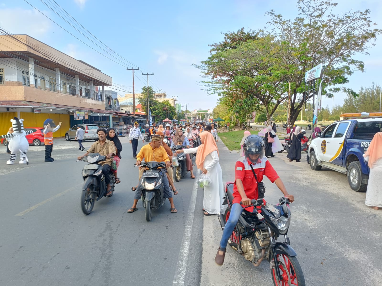 Selain berbagi takjil, kegiatan ini juga dimanfaatkan untuk menyampaikan pesan keselamatan berlalu lintas. Maskot Dishub dan badut zeta mengajak para pengendara untuk selalu tertib, menggunakan helm, serta mematuhi rambu-rambu lalu lintas demi keselamatan bersama, tidak lupa tim Pengamanan Lalu Lintas Dinas Perhubungan Kab. Natuna juga turut di kerahkan guna mengatur jalannya Lalu Lintas agar tidak terjadi kemacetan.