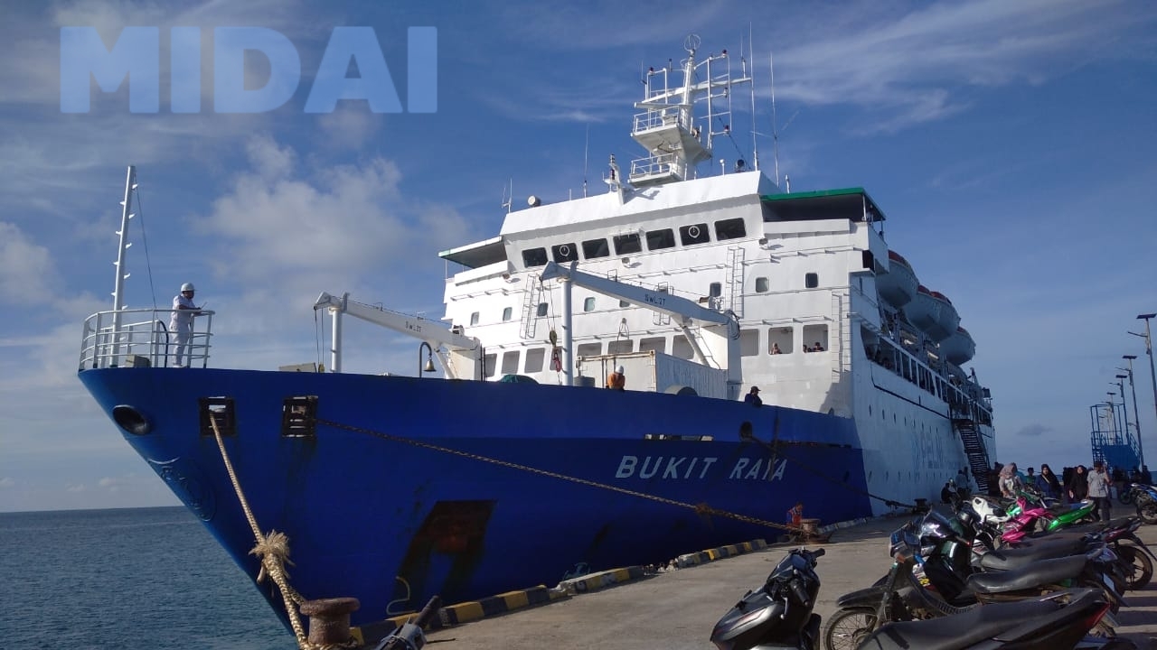 Diantara pelabuhan yang disandari Kapal KM.Bukit Raya adalah Pelabuhan Midai. Pulau Midai saat ini di bagi menjadi dua kecamatan yaitu kecamatan Midai dan Kecamatan Suak Midai yang berpenduduk sekitar 5.300 jiwa setiap 1 Minggu disandari Kapal Bukit Raya . Dalam mendukung kelancaran arus naik turun penumpang di pelabuhan tersebut Dinas Perhubungan pada tahun 2023 telah menganggarkan pembuatan tangga sebagai salah satu fasilitas penunjang kepelabuhan , disamping itu juga menugaskan beberapa petugas dalam pengawasan dan pendataan di pelabuhan tersebut. Besar harapan dengan kehadiran petugas DISHUB dan fasilitas pendukung ini kelancaran, ketertiban,dan kenyamanan masyarakat Natuna khususnya masyarakat Midai dan Suak Midai dapat diwujudkan.